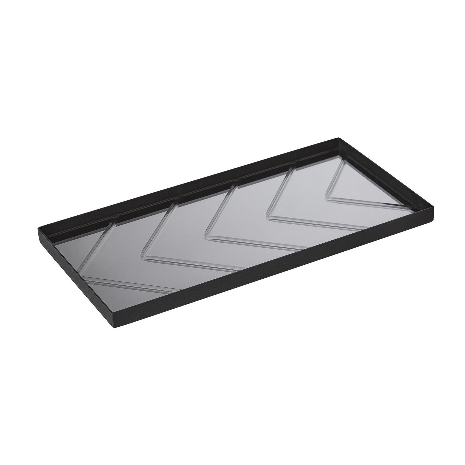 Flot sildebensbakke i en lækker grå nuance. Bakken kan bruges i alle husets rum og pynter samtidig. Det facetslebne spejl, som er inspireret af det klassiske sildebensmønster, og den sorte metal ramme forener det moderne med det klassiske.