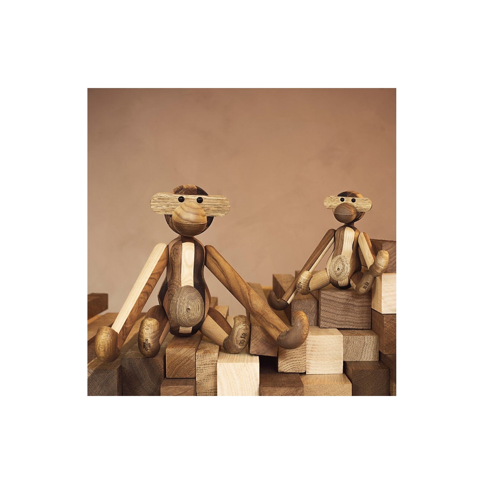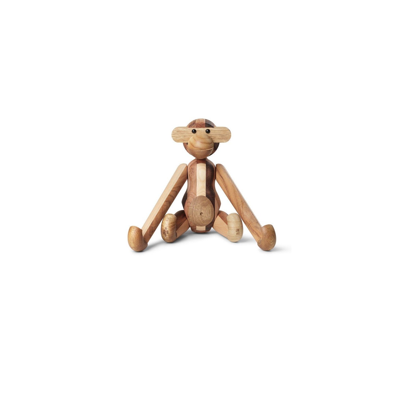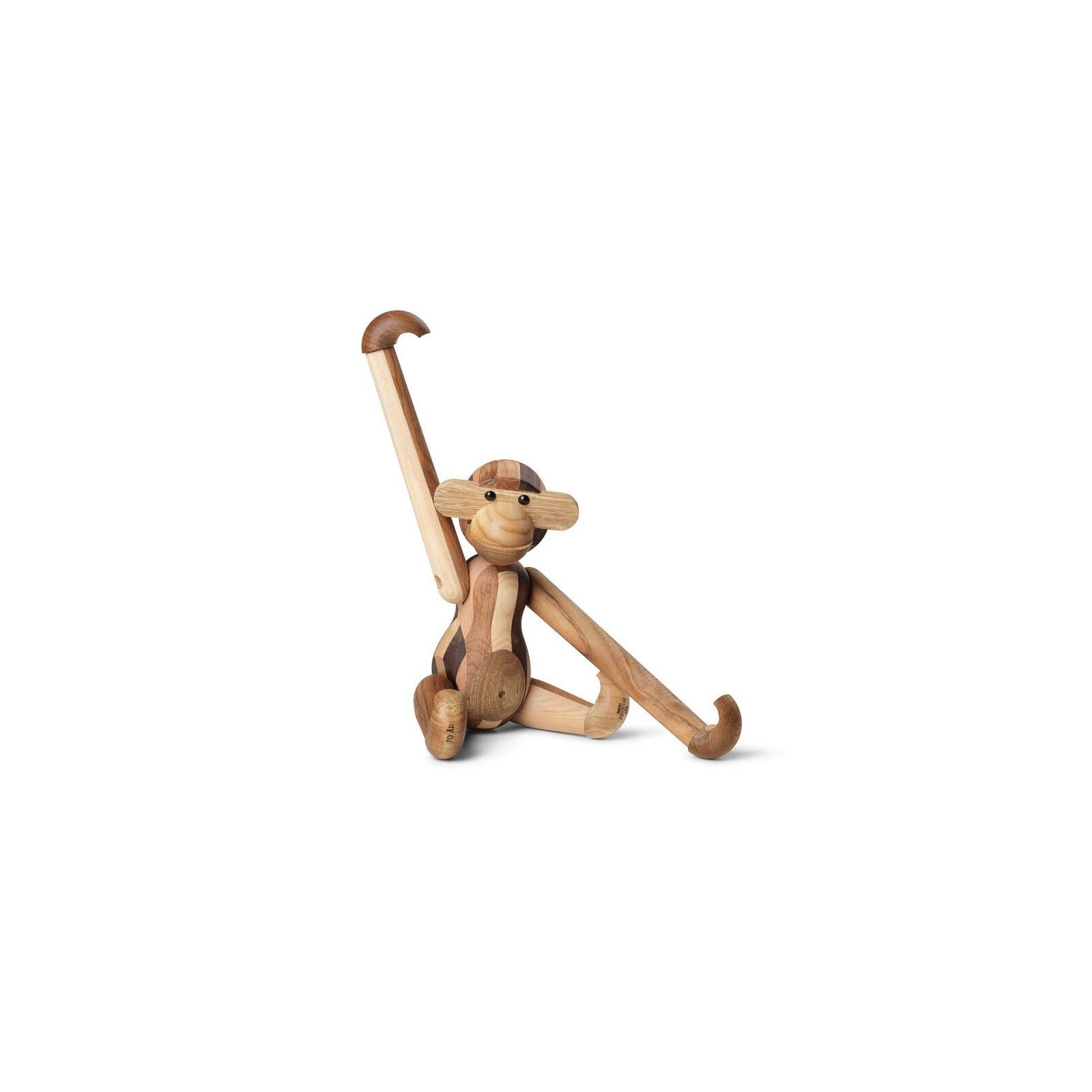 Kay Bojesens klassiske abe fra 1951 i en ny bæredygtig version, som giver en spændende mosaikeffekt og intet træ går til spilde. Hver abe er unik og forskellige i deres udtryk og bliver fremstillet i Danmark.
