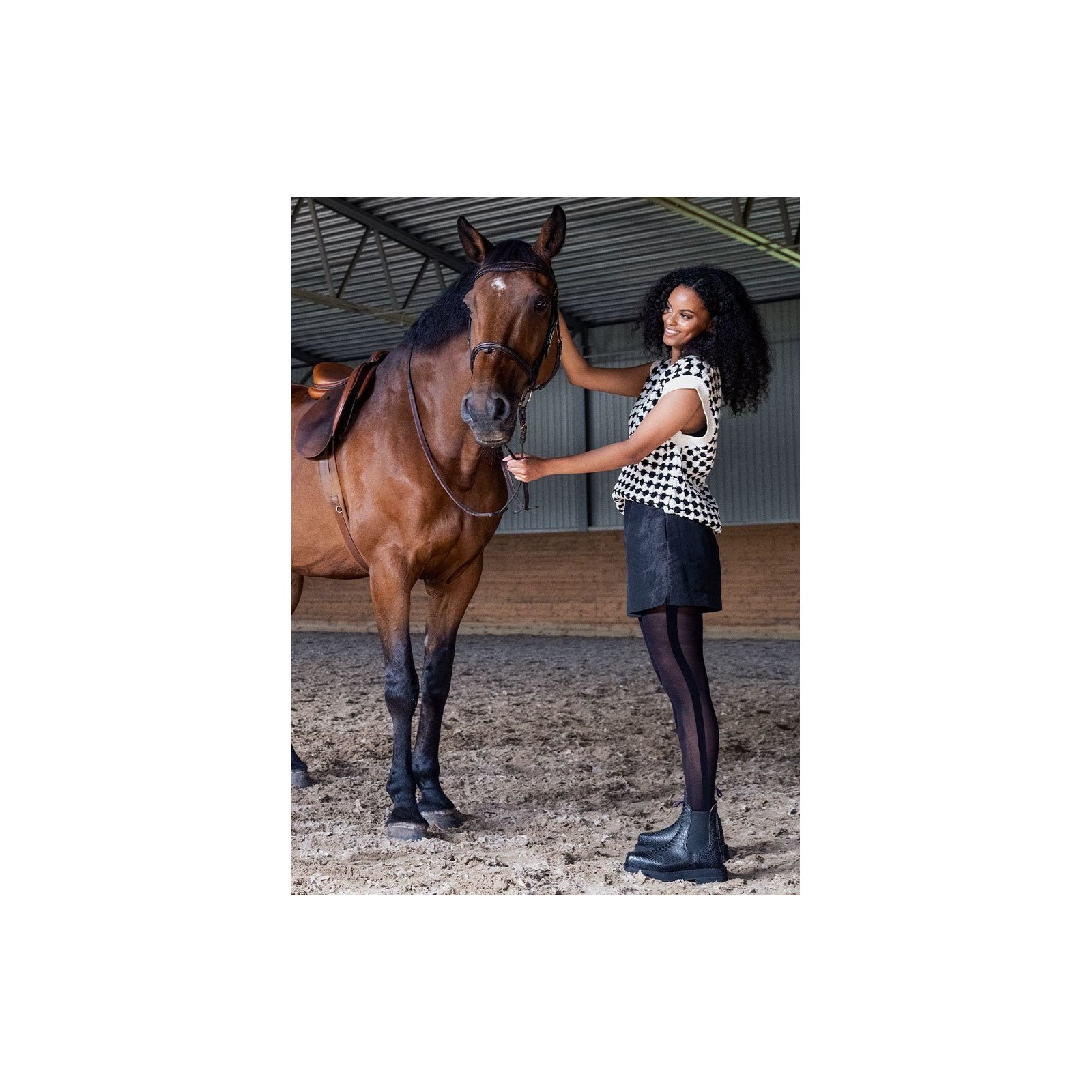 Andrea stripe tights er et moderne par strømpebukser med en simpel og elgant stribe ned langs siden af hvert ben. Den brede og bløde linning giver en behagelig pasform. Finishen er smukt mat og er 50 denier.