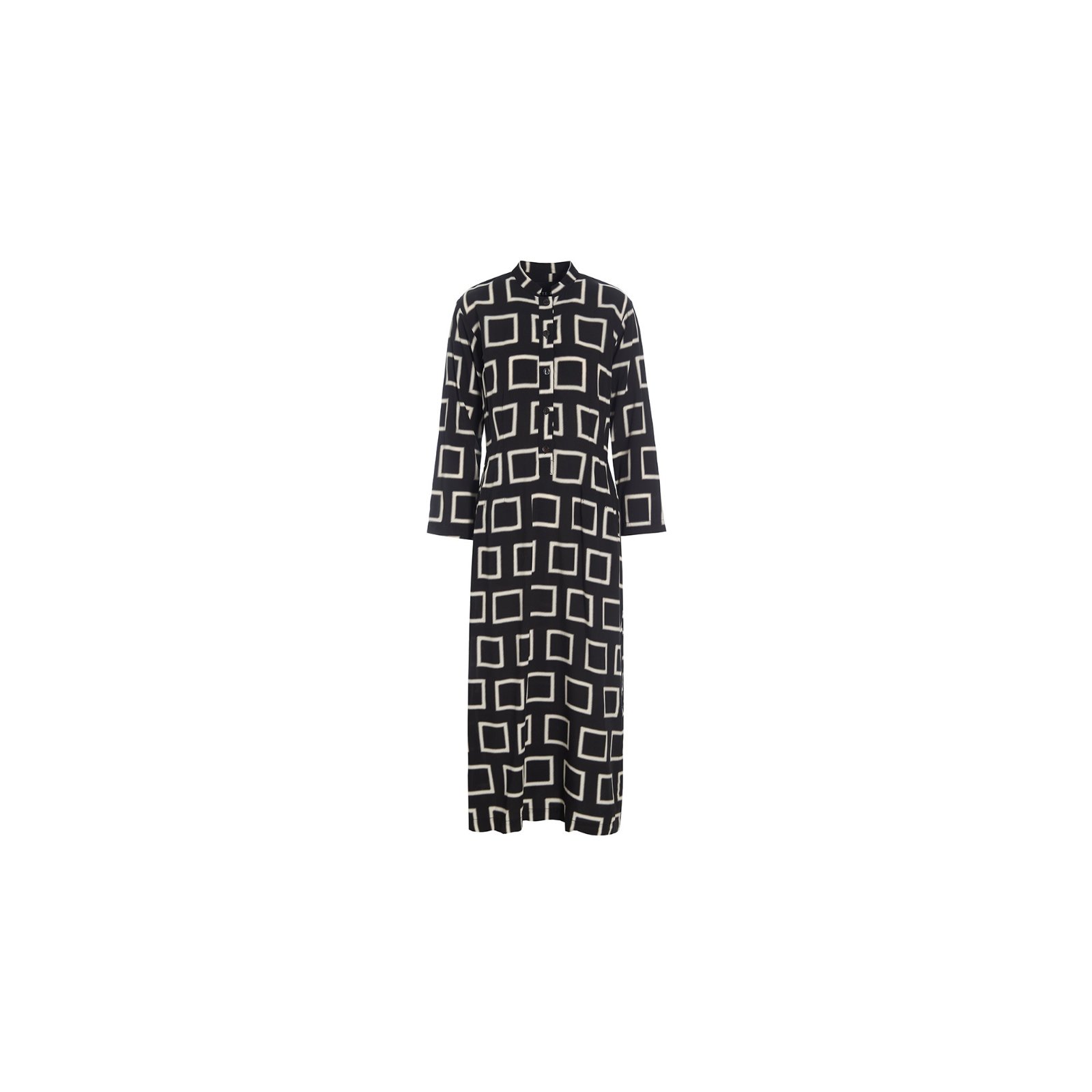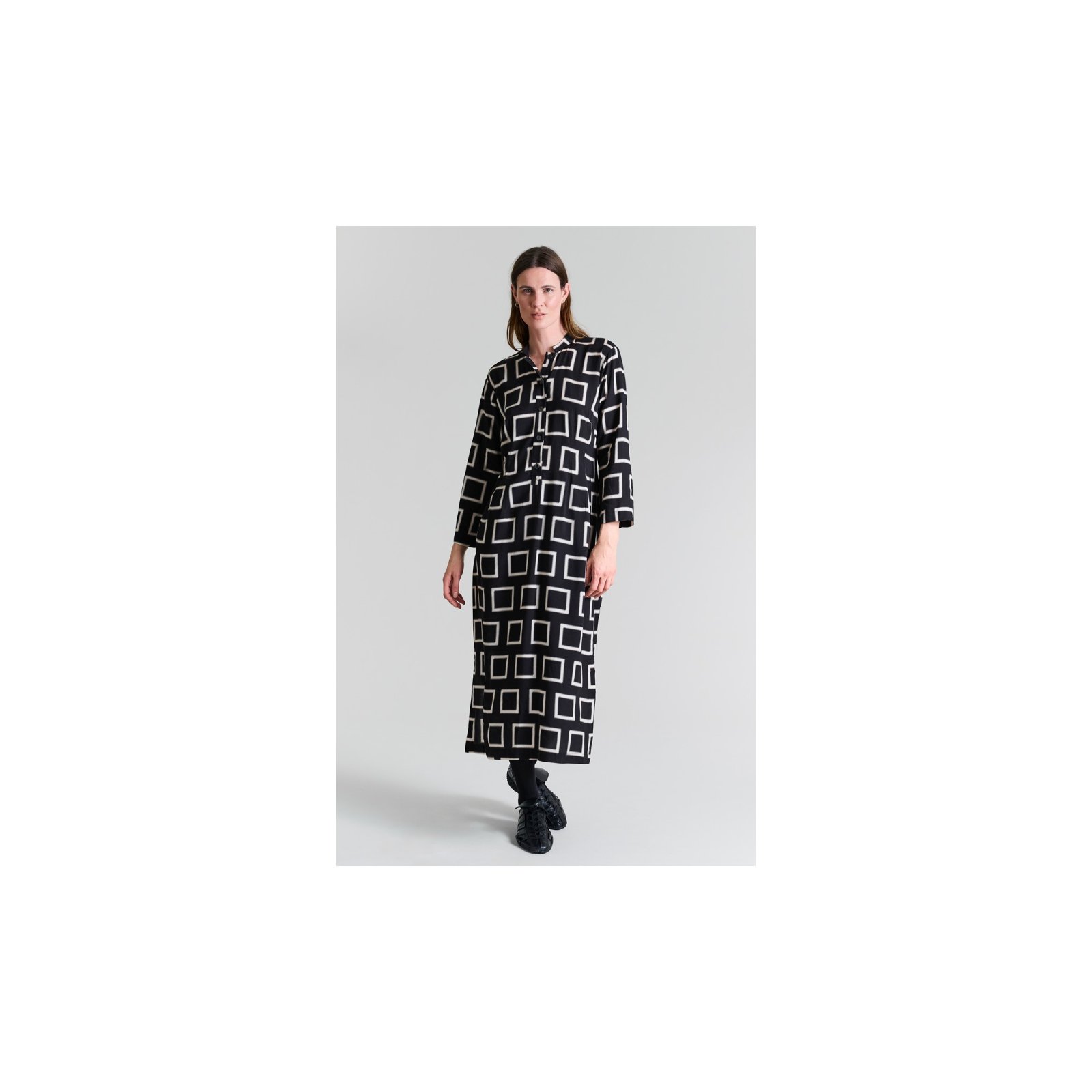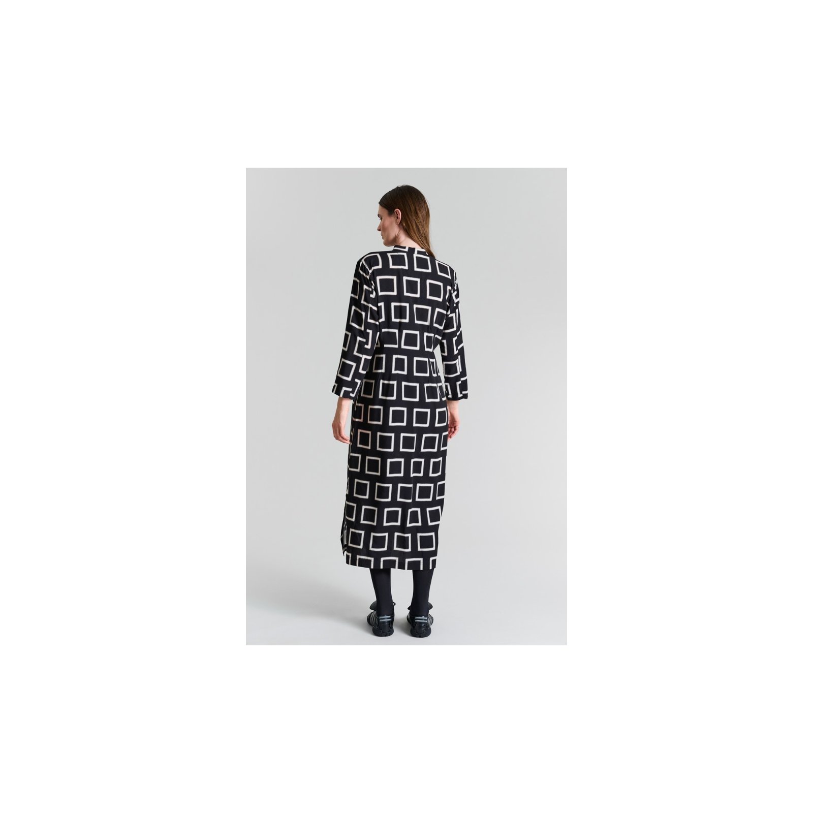 Kjole med et kunstfærdigt grafisk print. Den giver en lang, smuk silhuet og vil være en iøjnefaldende og cool tilføjelse til garderoben. Kjolen er oplagt at bære i al sin enkelhed uden accessories.