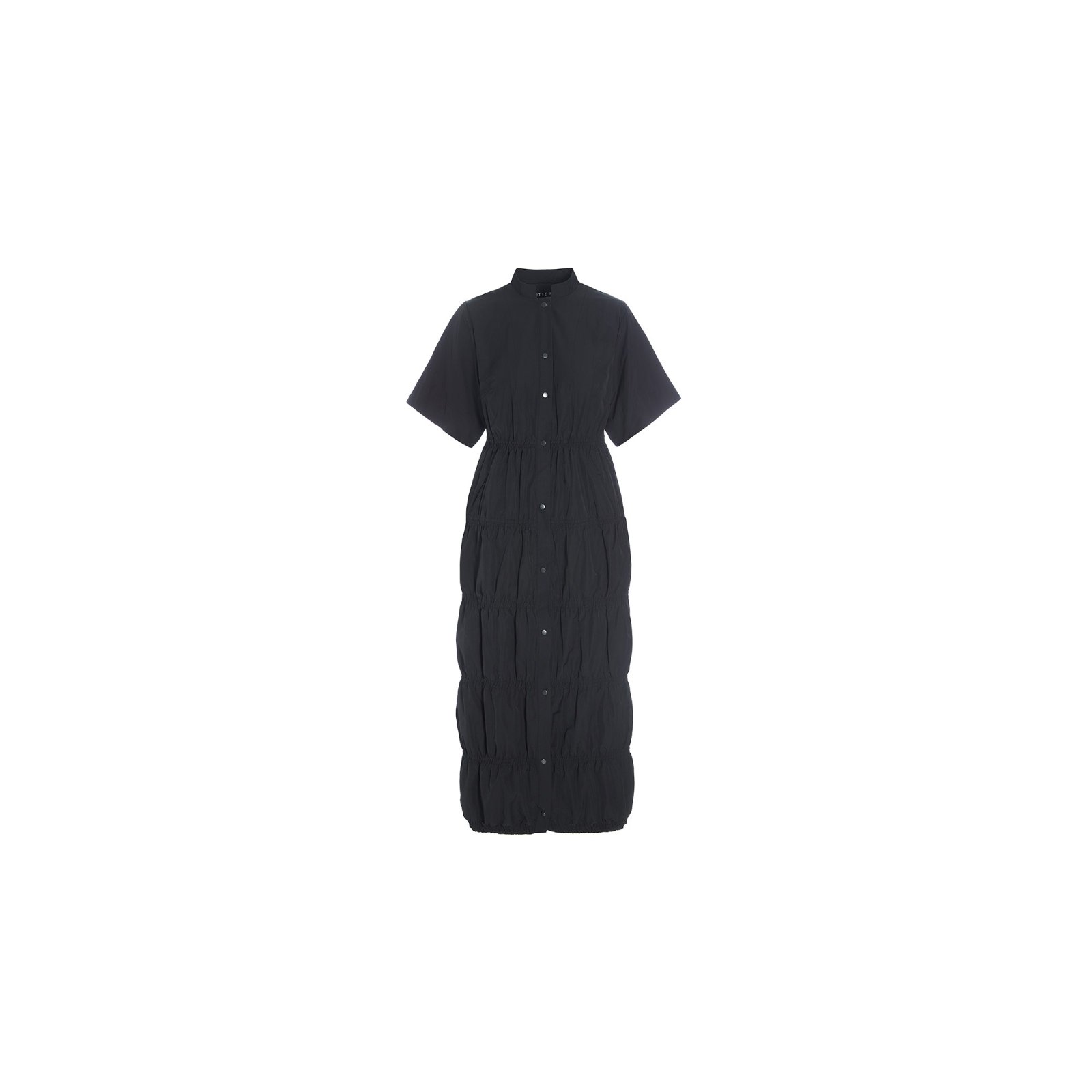 Cool skjortekjole, der er forsynet med flot rynkeeffekt fra taljen og nedad skørtet. Den spændende effekt gør at kjolen falder meget smukt om kroppen. Brug kjolen i al sin enkelhed, eller smid en kropsnær bluse under kjolen, så kan den bruges hele året rundt.