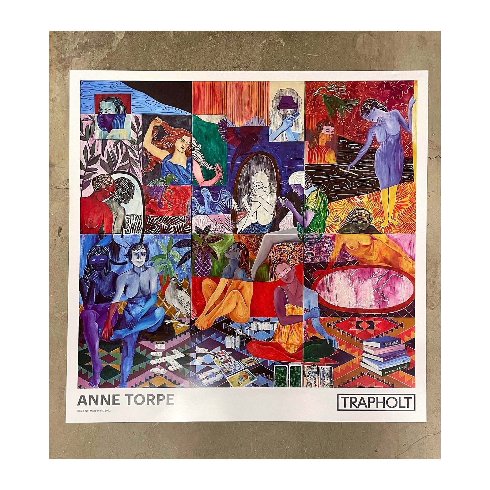 Kunstplakat med Anne Torpes farverige værk "This is not happening" fra 2022. Anne Torpe er født i 1981 i København. Hun er uddannet fra Det Kgl. Danske Kunst Akademi in 2009.